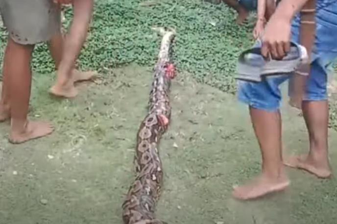 Meštani su odmah ubili mrežastog pitona i iseckali ga na komade.