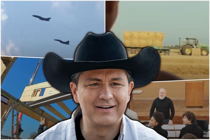 Britanski Gardijan navodi da te scene uključuju ukrajinske farmere, slovenačke kuće u izgradnji, Ričmond park u Londonu i par ruskih borbenih aviona.