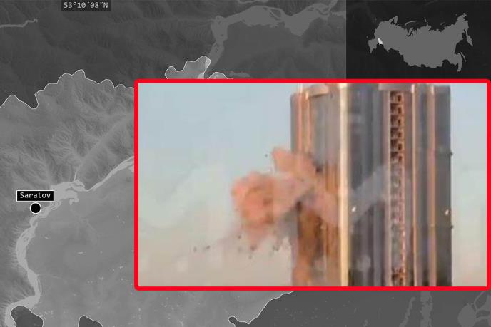 U postu koji prati snimak navodi se da je takođe oštećen i najviši sprat stambene zgrade u Engelsu.