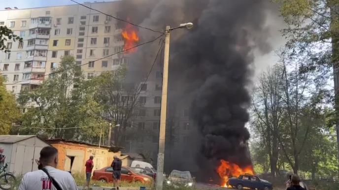 Ruski udar pogodio je 12-spratnu stambenu zgradu u gradskoj četvrti Industrijski, izazvavši požar. Najmanje tri osobe su poginule. Šef regionalne policije Harkova, Vladimir Timoško, dodao je da su Rusi pogodili Harkov sa pet D-30 UMPB.