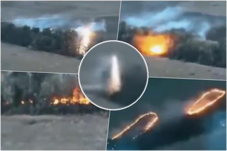- Istočna Ukrajina, dron koji pripada Ukrajincima baca otopljeni termit na drvored koji drže Rusi i pale ga - piše u objavi koja prati snimak.