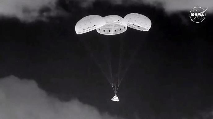 Boingov Starlajner, umesto da sleti na vodenu površinu, kao Spejs X Crew Dragon i druge kapsule iz NASAprograma Merkur, Starlajner je udario na suvo - na stazu svemirske luke Spejs Harbor u Novom Meskiku.
