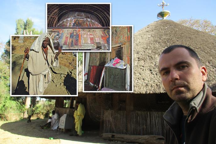 Došao sam u manastir Debre Sina na severu svetog jezera Tana u Etiopiji. Jezero nalikuje našoj Fruškoj gori: umesto u šumi, manastiri su izrasli na rasutim ostrvcima ogromnog jezera - majke svemoćne reke Nil. Posetio sam stotinak etiopskih crkava, a dvadesetak na jezeru Tana i u njegovoj blizini. To nije nimalo jednostavno: monasi su često neprijatni prema strancima, ulazak je dozvoljen samo pravoslavnim muškarcima, pokatkad posle „polaganja“ posebnog verskog testa, a ulaze i skupo naplaćuju ili traže da ih stranci odrade. A kad se u njih konačno kroči, etiopski manastiri su puni neobične i snažne duhovne muzike i još bogatijih legendi.