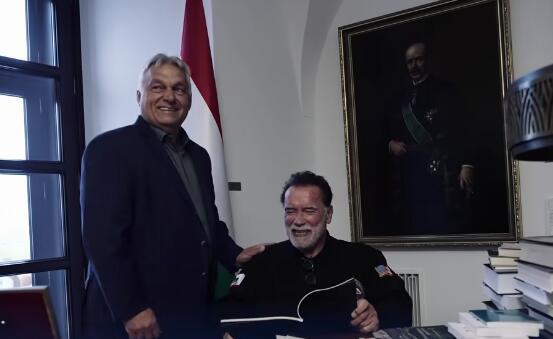 Pored fotografija iz teretane, Orban je takođe podelio i video snimak na kom se vidi kako bivši guverner Kalifornije sedi u kabinetu mađarskog premijera, kao i snimak sastanka u zgradi vlade.