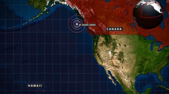Kanadski zvaničnici navode da se najnoviji zemljotres dogodio 64 kilometara jugozapadno od Sandspita na dubini od 19 kilometara, blizu obala ostrva Haida Gvai, ranije ostrva Kraljice Šarlote