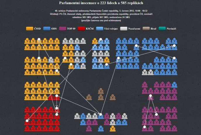 Telefoni političara objavljeni su na tabli ispod napisa "Moralna reforma" koja predstavlja raspored sedenja poslanika u Donjem domu češkog parlamenta sa imenima i brojevima mobilnih telefona, a u centru je telefon šefa države Klausa. "Ispred te table visi mobilni telefon sa koga posetioci bilo kome od poslanika i političara mogu da pošalju poruku, anonimno, dakle ne moraju da se plaše.