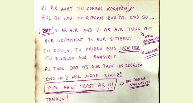 Osim fonetskog izgovora na "transkriptu za pripremu" zabeležene su i pauze, ali i akcenti.