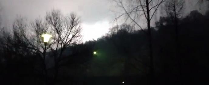 Snimak je nov, a na njemu se vidi nekakva bleštava drečavo zelena svetlost koja jarko obasjava nebo, a deluje kao da dolazi iz šume na brdu.