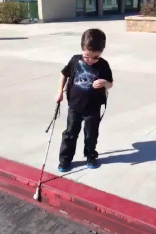 Snimak objavljen na Jutjubu prikazuje mališana kako se bojažljivo približava ivici pločnika i proverava teren belim štapom.