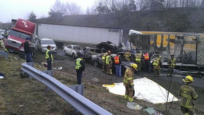 U saopštenju se navodi da je u planinskom delu autoputa u blizini granice između Virdžinije i Severne Karoline došlo do 17 odvojenih sudara kao posledica guste magle.