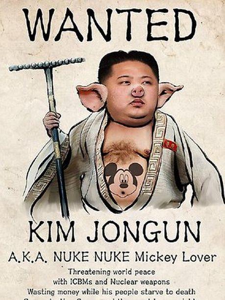 Umesto toga na društvenoj mreži Flikr pojavila se slika Kima sa svinjskom njuškom i crtežom Mikija Mausa na grudima. Ispod slike je postavljen natpis: "Preti svetskom miru nuklearnim napadom. Troši novac dok njegov narod umire od gladi".
