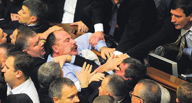 Inače, u parlamentu u Kijevu, koji ima 450 poslanika, lako izbija konflikt, kako oko sadržaja i dužine izlaganja, tako i oko jezika na kojem se obraća. Neki poslanici insistiraju da govore na ruskom, što drugi doživljavaju kao provokaciju. Sve pohvale dobija poslanik i proslavljeni bokser Vitalij Kličko, koji je svaku tuču vešto izbegao.