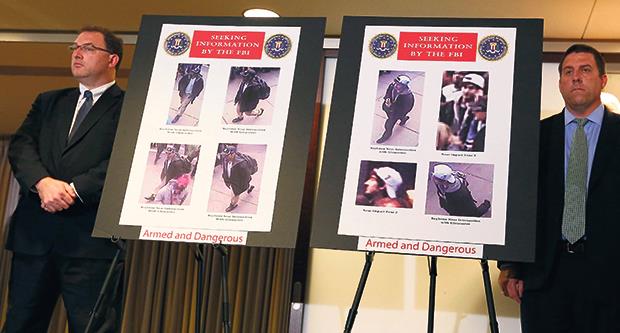 CNN je saopštio da su nadležni na osnovu snimka sigurnosne kamere iz jedne prodavnice nedaleko od eksplozije otkrili dvojicu mogućih bombaša. Agenti FBI navodno smatraju da su ta dvojica duž trase trke postavili bombe, od kojih su dve eksplodirale, ali još ne znaju njihova imena. Opisali su ih kao mlađe muškarce, od kojih je jedan imao belu bejzbol kapu, svetlu majicu i crnu jaknu, kao i crni ranac, za koji se veruje da je u njemu bila skrivena bomba u ekspres loncu sa ekserima i sačmom.