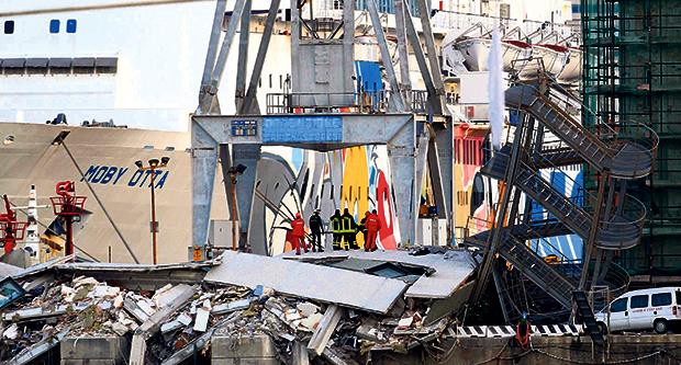 Brod „Džoli nero“, dugačak 240 metara i u vlasništvu kompanije „Mesina“, koji je krenuo ka Siciliji, iz nepoznatog razloga loše je manevrisao dok je izlazio iz luke i u punoj brzini udario u toranj. Metalna konstrukcija se od siline udara iskrivila, a oni koji su bili unutra pali su u more. Većina je poginula, a dvoje od četvoro povređenih u kritičnom su stanju. Spasioci pokušavaju da utvrde da li ima još ljudi u visokom tornju, koji od udarca stoji pod uglom od 45 stepeni.