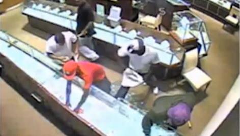 Video prikazuje pet osoba kako ulaze u zlataru. Njih četvorica nosili su kape. Dok su se približavali izloženom nakitu u staklenoj vitrini, jedan čovek je izvukao čekić iz pantalona. Brzo su razbili vitrinu, dok je staklo letelo po celoj zlatari.
