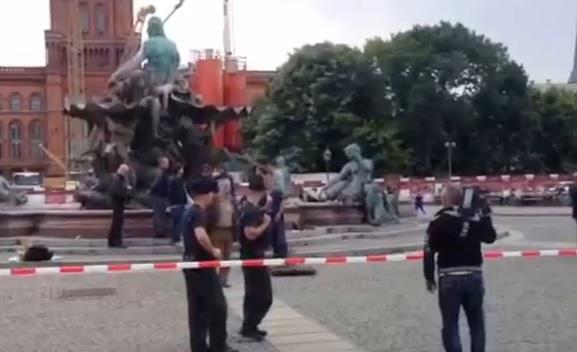 BERLIN - Policija je danas ustrelila i ubila jednog čoveka koji je nag mahao nožem na policajce u Neptunovoj fontani u Berlinu.