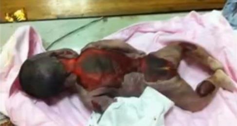 Na slikama se vidi maleno telo odojčeta sa velikim crvenim opekotinama.