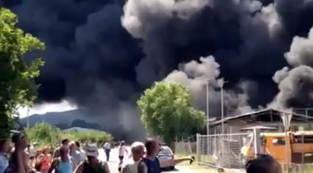 Gusti crni dim može se videti sa udaljenosti od više kilometara. Za sada nema izveštaja da je neko povređen, ali je nekoliko automobila i zgrada u blizini oštećeno.