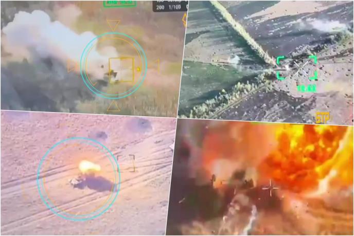 Snimci koje je podelio Fedosenko pokazuju ponovljene udare ukrajinskih FPV dronova na ruska vozila koji su navodno uništili 14 i oštetili 26 komada ruske vojne opreme, uključujući borbena vozila pešadije i tenkove.