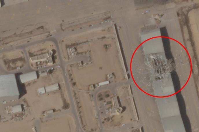 Satelitski snimci hangara za avione u ključnoj izraelskoj vojnoj vazduhoplovnoj bazi snimljeni nakon velikog udara iranskih projektila pokazuju veliku rupu na krovu baze.
