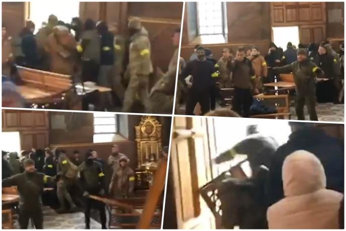 Čak 100 naoružanih u vojnim uniformama upalo je u crkvu. Razbijali su prozore i vrata i pretili parohijanima koji su stajali unutra tokom liturgije. Jedan od sveštenika je povređen. Uzimali su i telefone vernicima kako ne bi snimali šta se dešava, ali je snimak ipak isplivao.