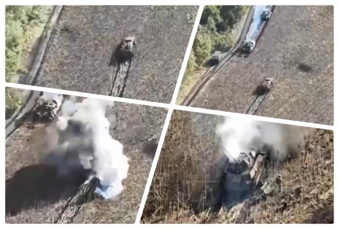 Tenkovi 17. tenkovske brigade ukrajinske vojske (T-64 ili T-72) dva puta su pogodili rusko vozilo i potpuno ga uništili.