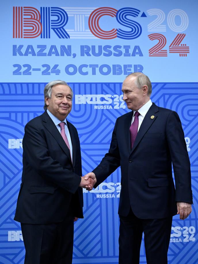 Kako je preneo Unian, Gutereš je 24. oktobra održao govor na samitu BRIKS-a u prisustvu ruskog predsednika Vladimira Putina, u kojem je pozvao na pravedan mir u Ukrajini u skladu sa Poveljom UN.