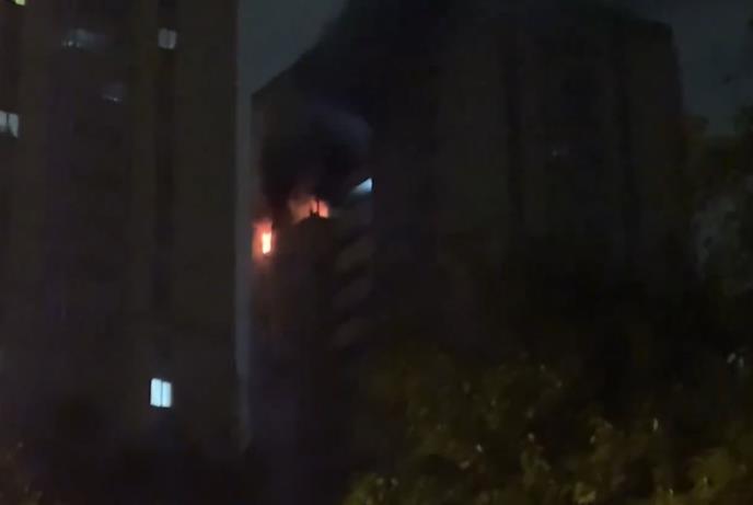 Fotografija objavljena na društvenim mrežama prikazuje visoku zgradu obavijenu dimom i vatru koja gori na jednom od najviših spratova.