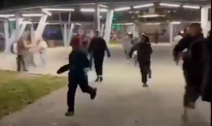 Policija traga za osumnjičenim, koji je u bekstvu, a okupljeni u parku, uglavnom tinejdžeri, su pobegli sa lica mesta.