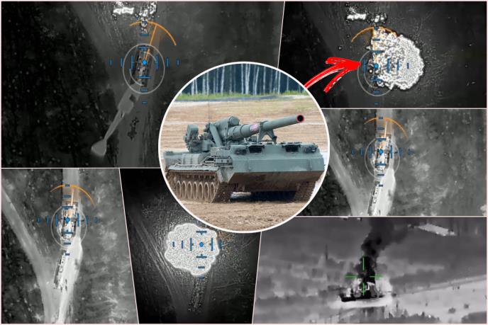 Ukrajinska vojska je je objavila na Fejsbuku video snimak uništavanja Piona izvedenog bespilotnom letelicom opremljenom bombama.