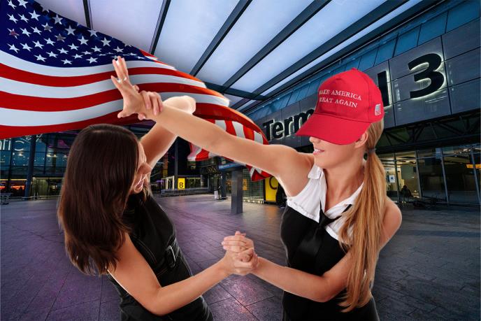 Tenzije su se rasplamsale na terminalu 5 aerodroma Hitrou nakon što je jedna putnica stavila na glavu kačket MAGA ("Make America Great Again") što je slogan bivšeg američkog predsednika i aktuelnog kandidata na izborima Donalda Trampa.