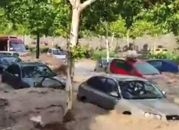 Jedna od najupečatljivijih snimaka prikazuje ljude kako izlaze iz automobila tokom bujice i penju se na krovove dok ih voda odnosi.