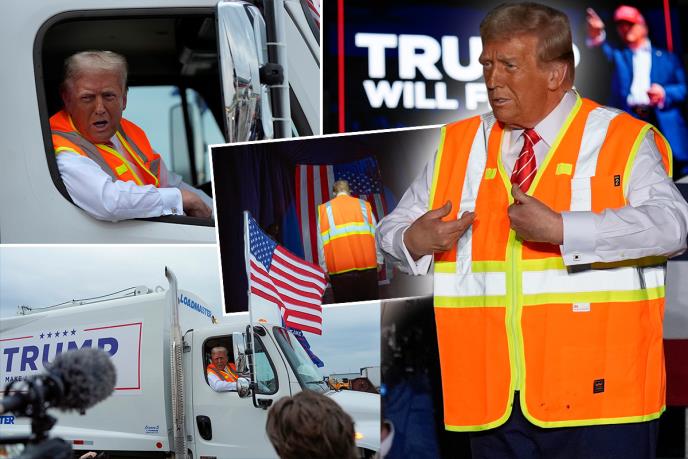 OVO NIJE ČOVEK, OVO JE NAJVEĆI ŠOU NA PLANETI ZEMLJI! Tramp na miting u ključnoj državi došao u đubretarskom kamionu, tu je i narandžasti prsluk (FOTO, VIDEO)