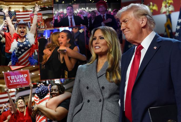 Izlazak na scenu Trampa na proslavi pobede sa pristalicama u Mar-a-Lagu pratila je pesma "Bože blagoslovi SAD", a oko njega su se ubrzo okupili članovi porodice.