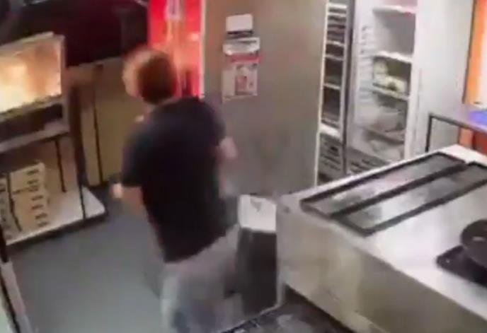 Na snimku se vidi kako Sarija preskače barijeru koja je vodila u kuhinju, a onda je napao Deboru, koja se u tom trenutku nalazila iza pulta. Napao ju je sa velikim nožem u ruci.