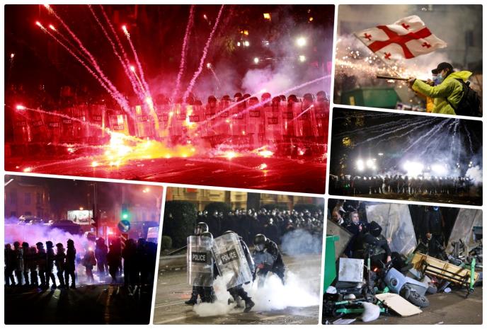 Više hiljada demonstranata okupilo se do kasno u noć u glavnom gradu Gruzije Tbilisiju, podižući barikade, razbijajući prozore na zgradi parlamenta i ispaljujući vatromet ispred ovog zdanja, a sve u znak protesta protiv vlade koja je prekinula pregovore o pridruživanju EU. Interventna policija je odgovorila ispaljivanjem vodenih topova i suzavca u masu.