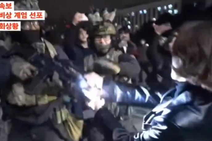 Ahn Gvi Rjong, portparolka glavne opozicione Demokratske partije i bivša voditeljka emitera ITN, uhvatila se u koštac sa naoružanim vojnikom tokom talasa demonstracija, koji je zahvatio zemlju tokom sedmice, nakon što je predsednik Južne Koreje uveo vanredno stanje.