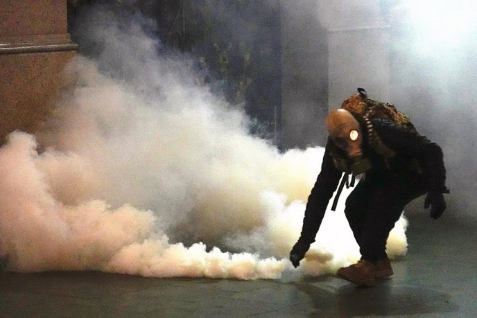 Mnogi demonstranti nose gas-maske i improvizovane maske za lice kako ne bi bili identifikovani, a policija u glavnom gradu Tbilisiju je protiv njih upotrebila vodene topove i suzavac.