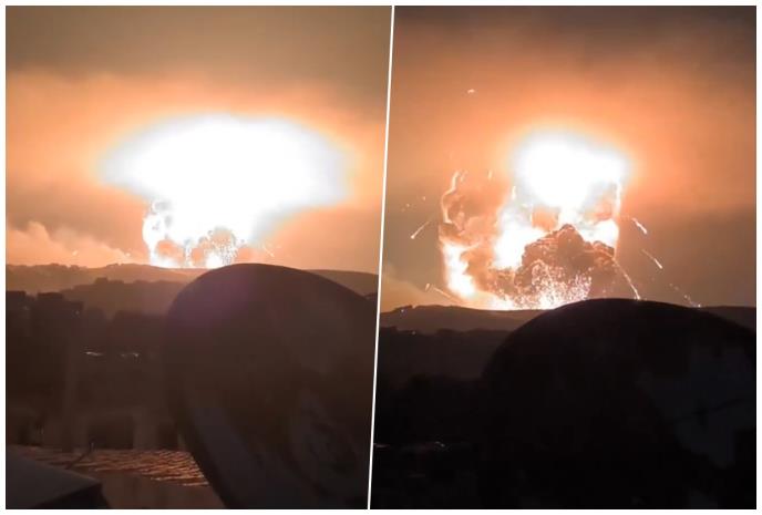 Dramatični video snimci koji kruže društvenim mrežama prikazuju ogroman bljesak za kojim je usledilo nekoliko eksplozija i gigantska "pečurka" dima koja se uzdiže ka nebu.