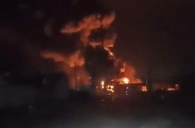 Miljajev je rekao da se rezervoar za gorivo zapalio u "jednoj od kompanija u regionu". Čini se da video snimci postavljeni na društvenim mrežama i koje su podelili stanovnici pokazuju veliki požar u skladištu nafte u gradu.
