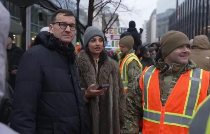- Bivši poljski premijer Mateuš Moravjecki stoji ispred arene Kapitol gde će se održati Trampov miting i pokušava da ubedi Nacionalnu gardu da je to on pokazujući im svoju stranicu na Vikipediji - napisala je novinarka, i objavila snimak.