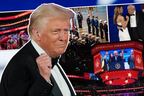 Sa potpredsednikom Džej Dijem Vensom i suprugama povratnik u Belu kuću sinoć je, nakon pobedničke parade u vašingtonskoj "Kapitol uan areni", učestvovao na tri svečana bala, od kojih je na poslednjem bio zabranjen pristup predstavnicima medija.