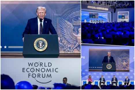 Predsednik Sjedinjenih Američkih Država Donald Tramp obraća se na Svetskom ekonomskom forumu u Davosu, Švajcarska, putem video-linka, održavajući svoj prvi značajan govor pred globalnim poslovnim i političkim liderima.