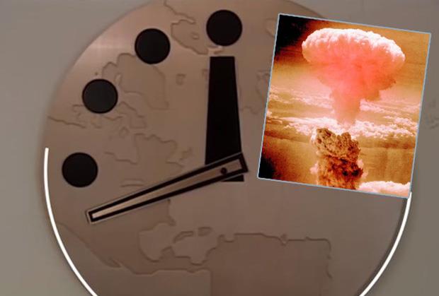Simbolični sat postavlja Bilten atomskih naučnika, koji ga je prošle godine podesio na 90 sekundi do ponoći.