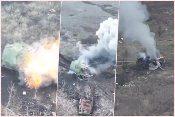 Na snimku, koji je na platformi X podelio vojni analitičar Rob Li, jasno se vidi rusko oklopno vozilo koje je uništeno u sekundi.