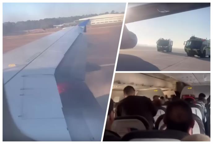 Navodi se da je plamen izbio iz jednog od krila letelice tokom rolanja po pisti.