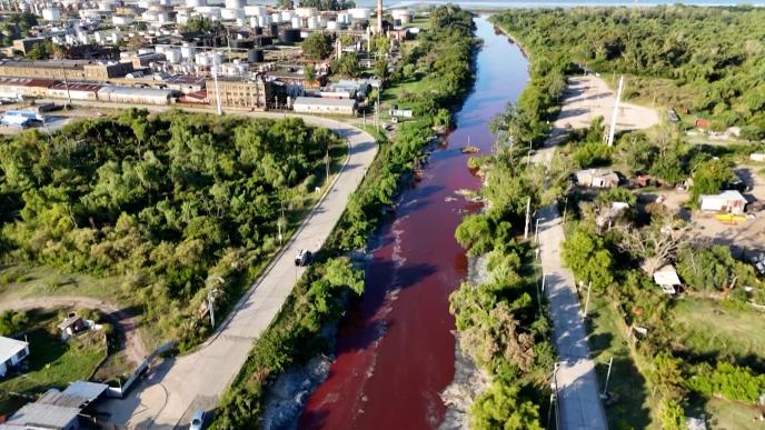 Slike i video snimci u četvrtak na društvenim mrežama prikazuju jarko crvenu vodu koja teče u zaliv Rio de la Plata, koji se graniči sa obližnjim ekološkim rezervatom.