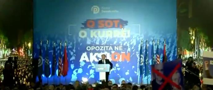Pirotehniku su bacali demonstranti okupljeni na trgu na protestu koji je sazvao opozicionar Salli Beriša, odmah pošto je on uzeo reč na protestu.