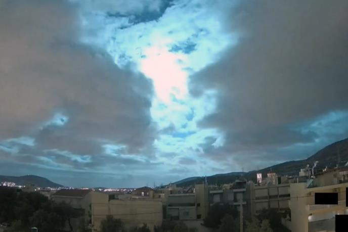 Na snimku se vidi kako svetlost koja obasjava Atinu, a zatim nestaje.