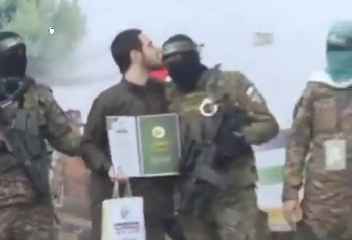 Ovaj trenutak zabeležen je uživo, a snimci prikazuju kako Omer Šem Tov sa osmehom ljubi pripadnike Hamasa prilikom oslobađanja.